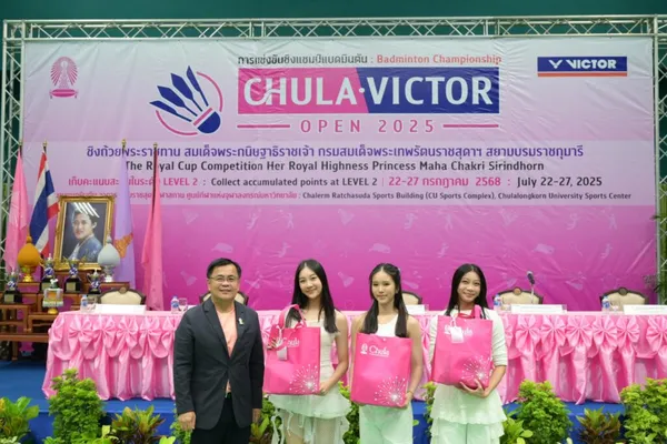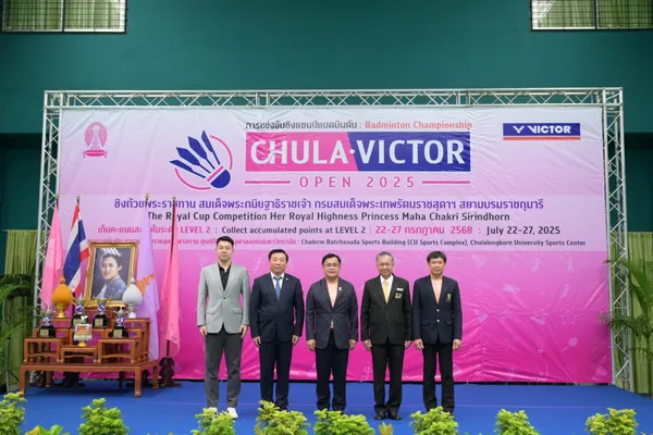 จุฬาลงกรณ์มหาวิทยาลัย ได้จัดงานแถลงข่าวการแข่งขันแบดมินตันชิงแชมป์ CHULA • VICTOR OPEN 2025 ชิงถ้วยพระราชทานสมเด็จพระกนิษฐาธิราชเจ้า กรมสมเด็จพระเทพรัตนราชสุดา ฯ สยามบรมราชกุมารี ที่ สนามแบดมินตัน ชั้น 1 อาคารเฉลิมราชสุดากีฬาสถาน (CU Sports Complex) ศูนย์กีฬาแห่งจุฬา โดยมี ศ.ดร.วิเลิศ ภูริวัชร อธิการบดีจุฬาฯ ให้เกียรติกล่าวต้อนรับและเปิดงานแถลงข่าว