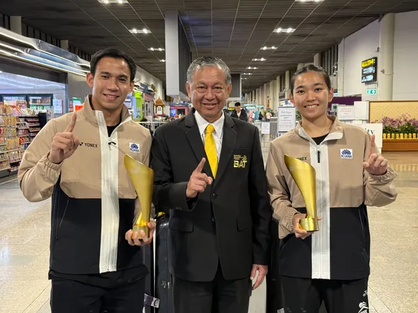 "บาส" เดชาพล พัววรานุเคราะห์ และ "เฟม" ศุภิสรา เพียวสามพราน นักแบดมินตันคู่ผสมมือ 4 ของโลก ชาวไทย เดินทางกลับถึงประเทศไทยเมื่อคืนวันอาทิตย์ที่ 21 กันยายน 2568 หลังสร้างประวัติศาสตร์คว้าแชมป์ ไชน่า มาสเตอร์ส 2025 เวิลด์ทัวร์ ซูเปอร์ 750