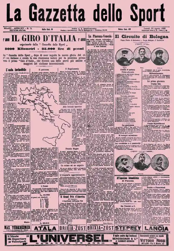 การแข่งขัน Giro d’Italia (จิโร ดิ อิตาเลีย) ถือกำเนิดขึ้นในปี ค.ศ. 1909 โดยหนังสือพิมพ์กีฬา La Gazzetta dello Sport ซึ่งพิมพ์ด้วยกระดาษสีชมพู ที่ต่อมาเป็นแรงบันดาลใจของเสื้อผู้นำเวลารวม “Maglia Rosa” หรือ “เสื้อชมพู” อันเป็นสัญลักษณ์สูงสุดของการแข่งขัน