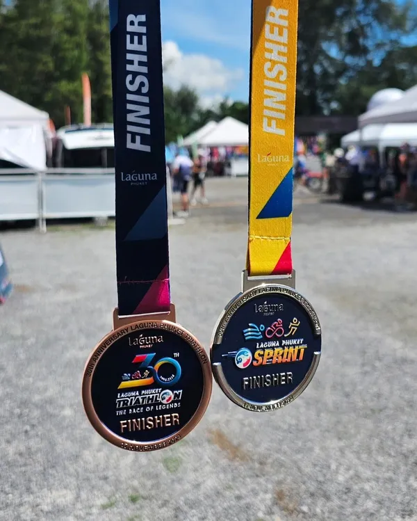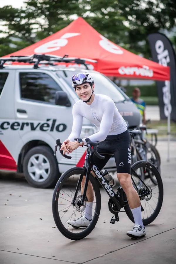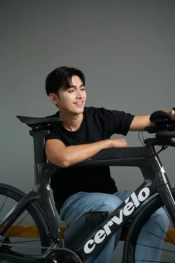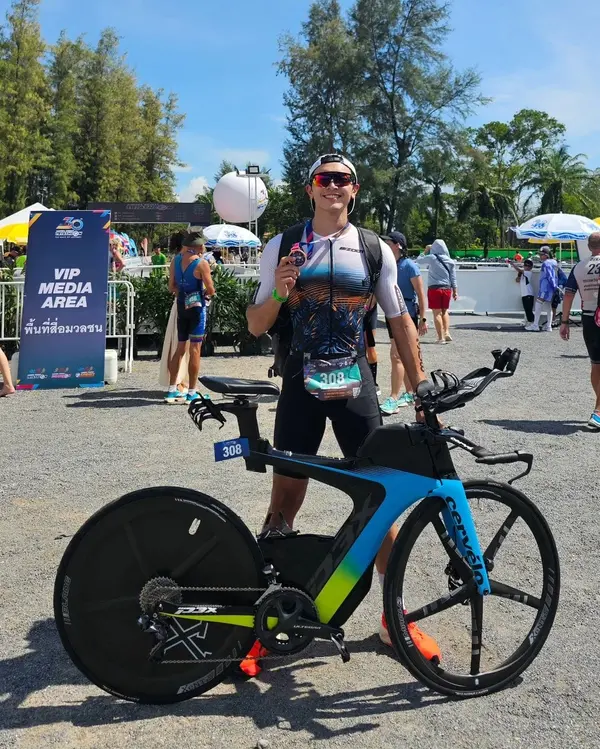 เมื่อมีเป้าหมาย ภณก็ไม่ลังเล “ตอนนั้นงานแสดงเริ่มเบาลง และ Laguna Phuket Triathlon กำลังเปิดรับสมัครพอดี คิดเลยว่า ‘งานแรกต้องเล่นใหญ่’ เลยลงระยะ Olympic Distance ซึ่งก็ท้าทายไม่น้อย โดยเฉพาะช่วงว่ายน้ำ ที่ต้องเริ่มจากทะเลแล้วเปลี่ยนไปว่ายในบึง ความรู้สึกมันต่างกันมาก โชคดีที่ผมมีพื้นฐานจาก Wakeboard และ Surf Skate มาก่อน เลยไม่รู้สึกอะไรมาก แค่ปรับเปลี่ยนนิดหน่อย ส่วนจักรยานผมใช้ Cervélo P3X ล้อดิสก์ พร้อมอุปกรณ์แบบเต็มชุด เพราะผมเชื่อว่าถ้าเราใช้ของดี จักรยานที่ดูดี มันจะช่วยเพิ่มแรงบันดาลใจ อยากซ้อม อยากออกไปปั่น สุดท้ายจบงานในเวลาไม่เกิน 4 ชั่วโมง ตามที่ตั้งใจไว้”
