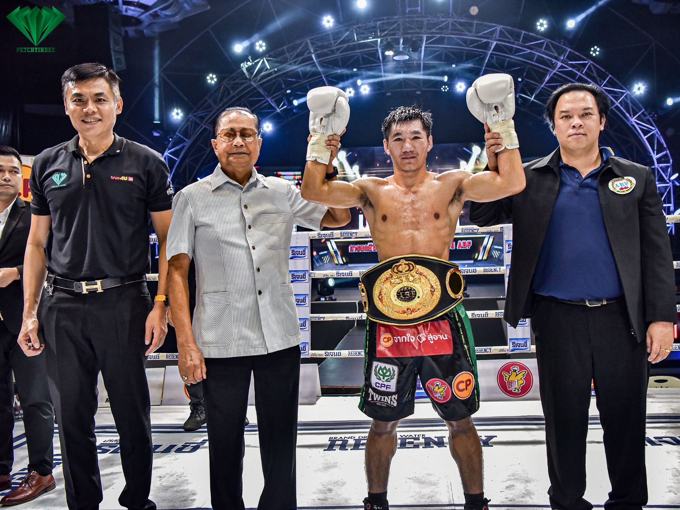 กุมารดอย เพชรยินดีอะคาเดมี่ โชว์ฟอร์มเก่งเดินต่อยท้องสลับบนเล่นงาน เมห์ราน ซาดีกี้ จนต้านไม่ไหว ก่อนจะชนะทีเคโอ ยก5 คว้าแชมป์สหพันธ์มวยแห่งเอเชีย ABF รุ่นซูเปอร์ฟลายเวท 115 ปอนด์ ได้สุดสวย
