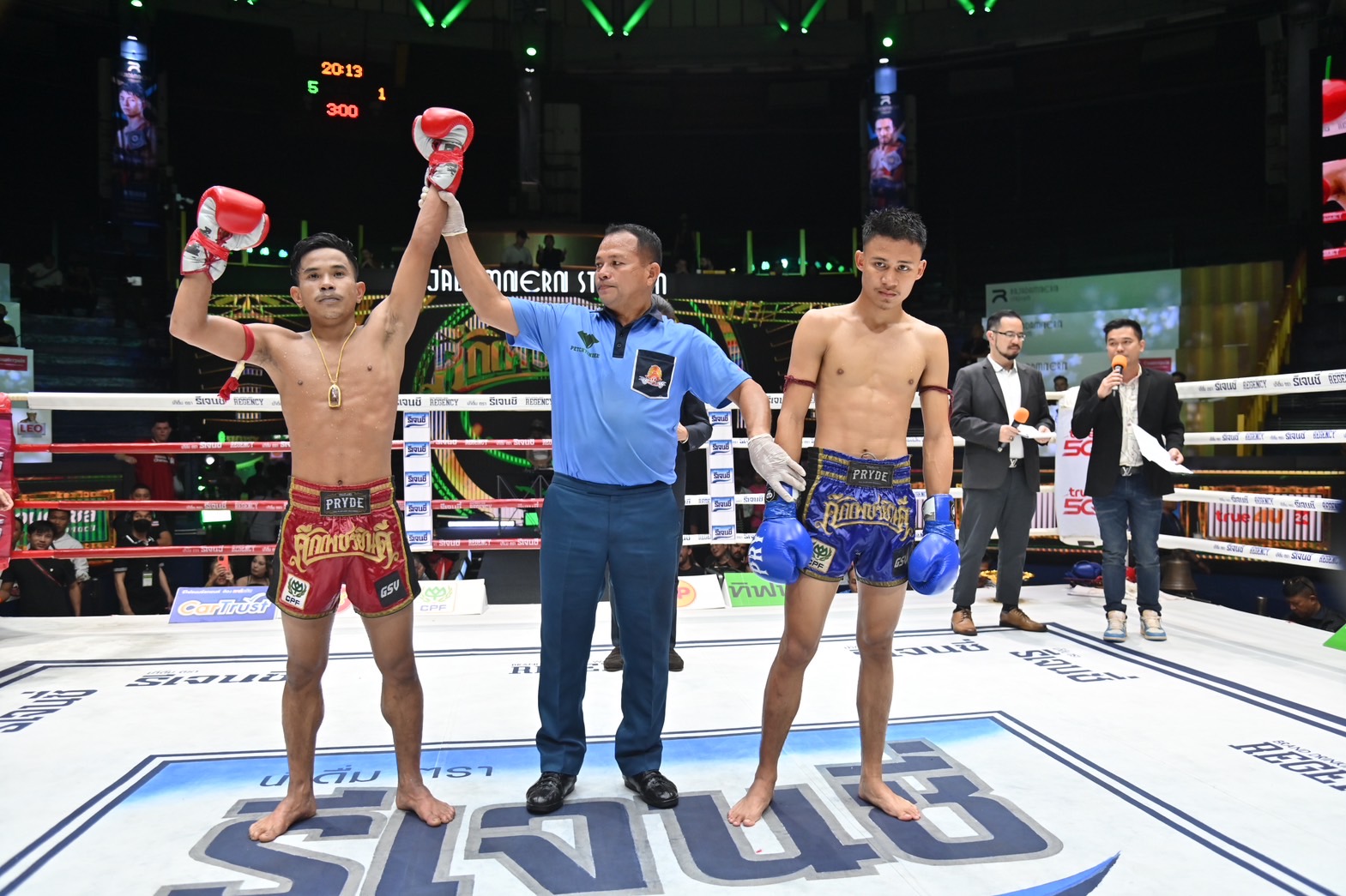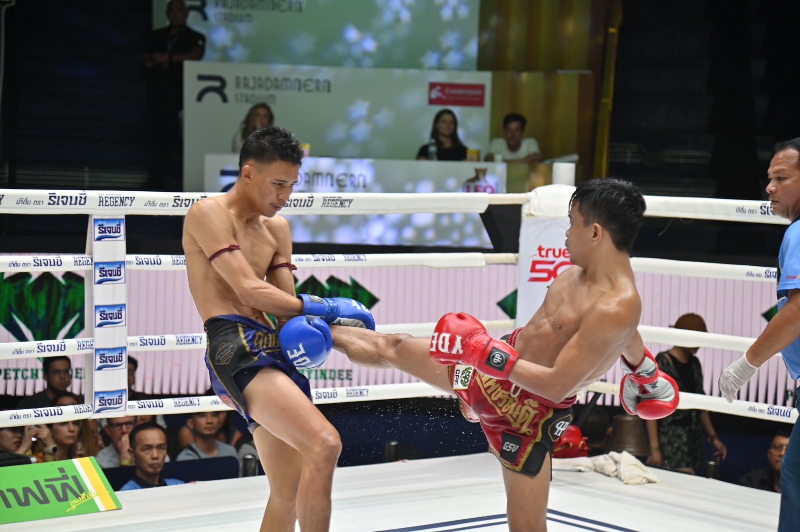 แก่นอุบล ภ.หลักบุญ แชมป์รุ่นฟลายเวท 112 ปอนด์ของเวทีราชดำเนิน ขึ้นมาเจอกับ โฟร์วิน ม.รัตนบัณฑิต โดยเกมคู่นี้ โฟร์วินอาศัยความใหญ่เดินบดวางแข้งสลับปล้ำตี ขณะที่ แก่นอุบลอาศัยความเก๋าดักโต้เล่นงานสลับเตะเจาะยางเน้น จนต้องมาชิงดำยกสุดท้ายก่อนที่แก่นอุบลจะออกอาวุธได้จะแจ้งกว่าป้องกันแชมป์ไว้ได้อีกครั้ง คู่เอก