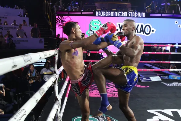 การแข่งขันมวยไทย ศึกพันธมิตรมวยไทย วันพุธที่ 5 ก.พ. 68 เวทีมวยราชดำเนิน คู่เอก ยอดทองไทอดีตแชมป์รุ่นเก๋าจากพัทลุง เจอกับบัวเขียวนักชกผิวสีจากอเมริกา กรรมการ ไพฑูรย์ กบกลาง เป็นผู้ห้าม หมดยกแรก ยอดทองไทเก๋าประสบการณ์ดีต่อก่อน 2-1