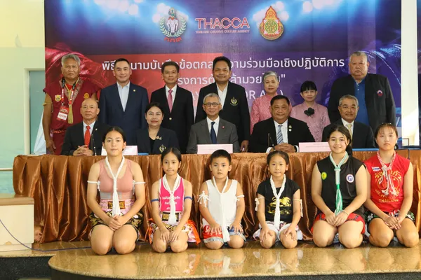 จากนั้นได้มีพิธีลงนามบันทึกข้อตกลงความร่วมมือเชิงปฏิบัติการ “โครงการต้นกล้ามวยไทย” ระหว่าง กกท. กับ สำนักงานคณะกรรมการการศึกษาขั้นพื้นฐาน (สพฐ.) โดยมี ผศ.พิมล เป็นประธาน พร้อมด้วย นายธีร์ ภวังคนันท์ รองเลขาธิการสพฐ. และนางโปรดปราน ร่วมลงนาม