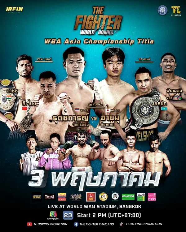 เสาร์ที่ 3 พฤษภาคม 2568 พบกับศึกมวยสากลสุดมัน "The Fighter World Boxing" ประเดิมสังเวียน World Siam Stadium ระเบิดความมันโดย TL Boxing Promotion ร่วมกับ IRFIN Promotions ดึงนักชกระดับอินเตอร์ ชิงแชมป์ WBA Asia หลายรุ่น แฟนมวยห้ามพลาด!