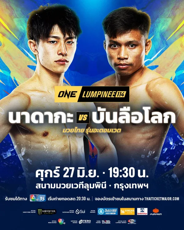 ยกระดับความน่าสนใจขึ้นไปอีกขั้นสมกับเป็นศึกนัดใหญ่ ONE ลุมพินี 114 ที่จะจัดขึ้นในวันศุกร์ที่ 27 มิ.ย.นี้ ซึ่งล่าสุดได้มีการเผยโฉมคู่มวยน่าสนใจเพิ่มอีก 1 คู่ โดยประกบ 2 ดาวบู๊รุ่นเล็กมาดวลเดือดกันระหว่าง “นาดากะ โยชินาริ” นักสู้ยอดฝีมือ วัย 24 ปี จากญี่ปุ่น พบกับ “บันลือโลก ศิษย์วัชรชัย” จอมน็อกเอาต์ วัย 28 ปี จากสกลนคร ในกติกามวยไทย รุ่นอะตอมเวต (105-115 ป.)