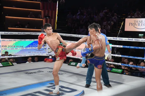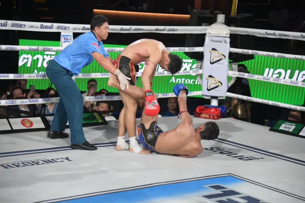 หนึ่งอำนาจ อึ่งอุบล ขึ้นมาเจอกับ เด่นผาด่าง แดงรถดี คู่นี้ หนึ่งอำนาจเคยชนะมาก่อน โดยเกมแลกอาวุธกันอย่างสนุกดุเดือดพลิกไปพลิกมา เด่นผาด่างเดินบุกเน้นเข่าในเป็นหลัก แต่หนึ่งอำนาจเน้นจังหวะฝีมือมีเหลี่ยมหักได้เข้าตากว่า ครบยก หนึ่งอำนาจชนะคะแนนย้ำแค้นอีกครั้ง
