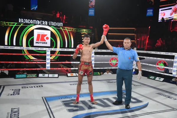 ยก 1: ทั้งสองฝ่ายต่างเน้นชิงจังหวะออกแข้งแลกกันแบบหนักหน่วง โดยน้ำตาเดือดถนัดขวา หนึ่งภูสิงห์ถนัดซ้าย การป้องกันตัวยังเหนียวแน่น เสมอกัน