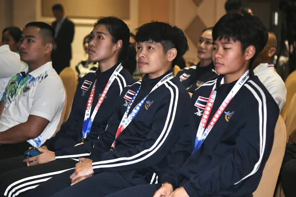 จากนั้น นายสรวงศ์ เทียนทอง รัฐมนตรีว่าการกระทวงการท่องเที่ยวและกีฬา ได้กล่าวแสดงความยินดีที่กีฬามวยไทยได้บรรจุมหกรรมกีฬาทหารโลก 2027 ที่สหรัฐอเมริกา ก่อนมอบช่อดอกไม้แสดงความยินดีกับนักกีฬามวยไทยทหาร 3 เหล่าทัพคือ กองทัพบก, กองทัพเรือ และกองทัพอากาศ หลังสร้างผลงานยอดเยี่ยมในการแข่งขันกีฬามวยไทยทหารโลก ครั้งที่ 1 พร้อม ตามด้วย ดร.สุทิน คลังแสง นายกสมาคมส่งเสริมกีฬาทหาร (ประเทศไทย) มอบเงินสนับสนุนการเก็บตัวฝึกซ้อมของนักกีฬาจำนวน 513,000 บาท และมอบเงินรางวัลสนับสนุนนักกีฬาจำนวน 200,000 บาท รวมเป็นจำนวนเงินทั้งสิ้น 713,000 บาท เพื่อเป็นขวัญและกำลังใจให้กับนักกีฬา ก่อนรับประทานอาหารเย็นร่วมกันและรับชมดนตรีจากกรมดุริยางค์ทหารบก โดยบรรยากาศเป็นไปอย่างอบอุ่นและชื่นมื่น