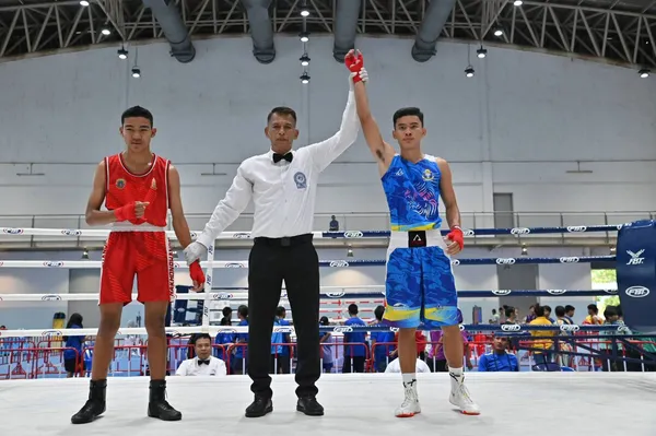 บัณฑิตพงษ์ โชตินอก นักชกดาวรุ่งจากโรงเรียนกีฬานครสวรรค์ โชว์ฟอร์มร้อนแรง ไล่ถล่ม นิธิโชติ คำบ่อ เอาชนะอาร์เอสซีตั้งแต่ยกแรก ทะลุชิงเหรียญทอง รุ่น 60 กก. ศึกมวยยุวชน–เยาวชน "ดาวรุ่งมุ่งโอลิมปิก 2568"