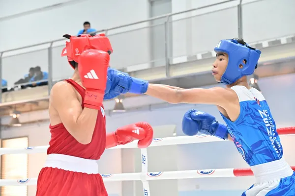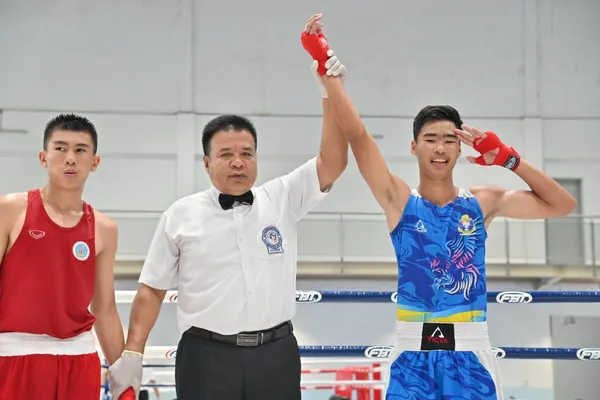 ธนพล เหมือนเมือง จากรร.กฬ.จ.นครสวรรค์ โชว์ฟอร์มเหนือชั้นชนะคะแนน เกษมสันต์ วิเศษทรัพย์ 5-0 คว้าเหรียญทองรุ่น 60 กก. ศึกมวยสากลยุวชน-เยาวชน ดาวรุ่งมุ่งโอลิมปิก 2568 ที่มวกเหล็ก สระบุรี