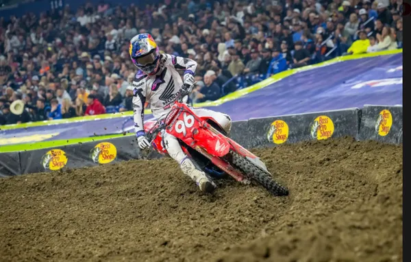 ฮันเตอร์ ลอว์เรนซ์ ยอดนักบิดจากทีม Honda HRC Progressive โชว์ฟอร์มสุดแกร่งควบคู่กับตัวแข่ง Honda CRF450R ผงาดคว้าชัยชนะแบบ Triple Crown ในการแข่งขันศึก AMA Supercross 2026 (AMA SX 2026) สนามที่ 9 ที่ ลูคัส ออยล์ สเตเดียม เมืองอินเดียนาโพลิส สหรัฐอเมริกา พร้อมรักษาตำแหน่งผู้นำบนตารางแชมเปี้ยนชิพได้อย่างเหนียวแน่น