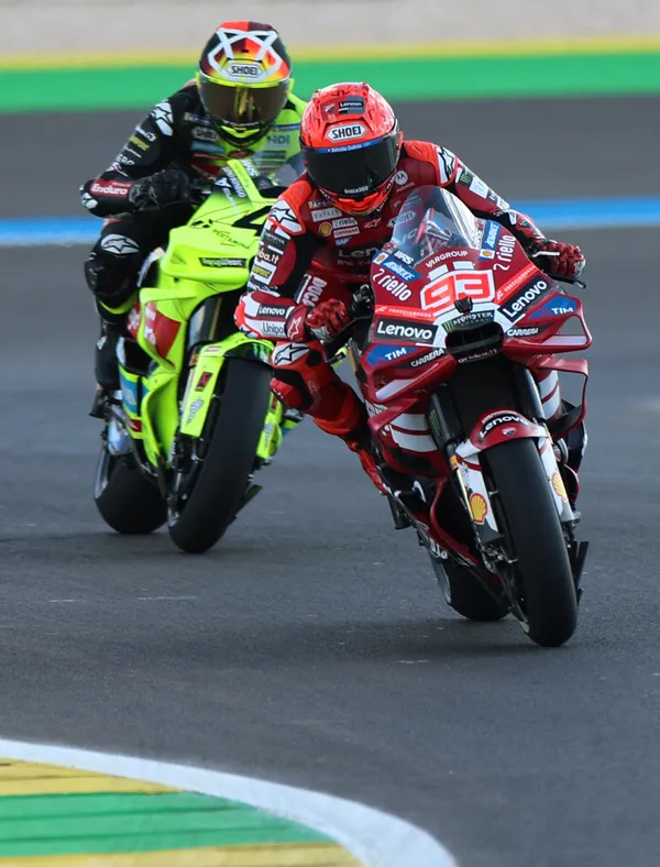 มาร์ค มาร์เกซ โชว์ฟอร์มแชมป์โลก 7 สมัย ไล่บี้สุดมันส์ก่อนแซงคว้าชัยสปรินต์เรซที่บราซิล เฉือน "ดิ จานนันโตนิโอ" แค่เสี้ยววินาที ขณะที่สนามป่วนเจอหลุมยุบจนต้องเลื่อนแข่ง ด้านรุกกี้เจ้าถิ่น "ดิโอโก โมเรร่า" ฝากผลงานน่าประทับใจเข้าป้ายที่ 10
