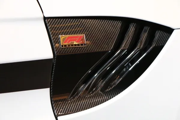 เคียงข้างกันคือ Aston Martin Vantage F1 Edition ที่โดดเด่นด้วยโลโก้ F1 Edition บริเวณด้านข้างตัวรถทั้งสองฝั่ง พร้อมส่วนประกอบคาร์บอนไฟเบอร์ทั้งภายในและภายนอก ไม่ว่าจะเป็นกระจกมองข้างและสปอยเลอร์หลัง นอกจากนี้ เครื่องยนต์ยังได้รับการปรับแต่งให้มีแรงม้าเพิ่มขึ้นเป็น 535 แรงม้า เทียบเท่ากับรถ Vantage ที่ใช้เป็น Safety Car ในการแข่งขันเอฟวัน