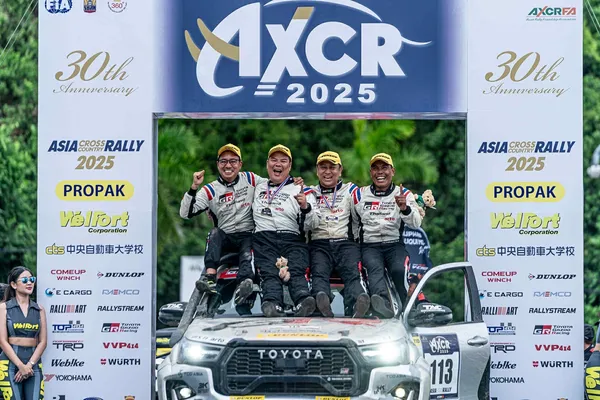 ทีมแข่งโตโยต้า กาซู เรซซิ่ง ไทยแลนด์ ประกาศความสำเร็จ ด้วยการ ครองโพเดี้ยม 2 ปีซ้อน จากการคว้าอันดับ 2 และ 5 ในรุ่น T1D ของการแข่งขันศึกใหญ่เอเชีย ครอสคันทรี แรลลี่ (Asia Cross Country Rally2025 AXCR 2025) ด้วยรถแข่ง Hilux REVO GR SPORT 4x4