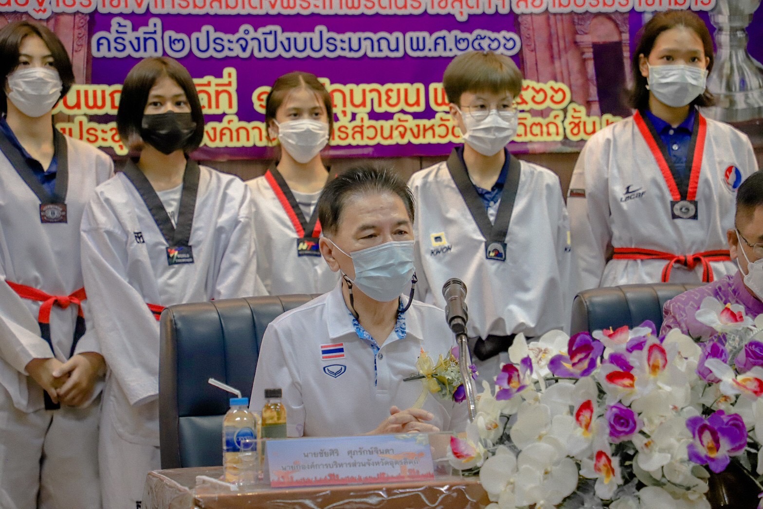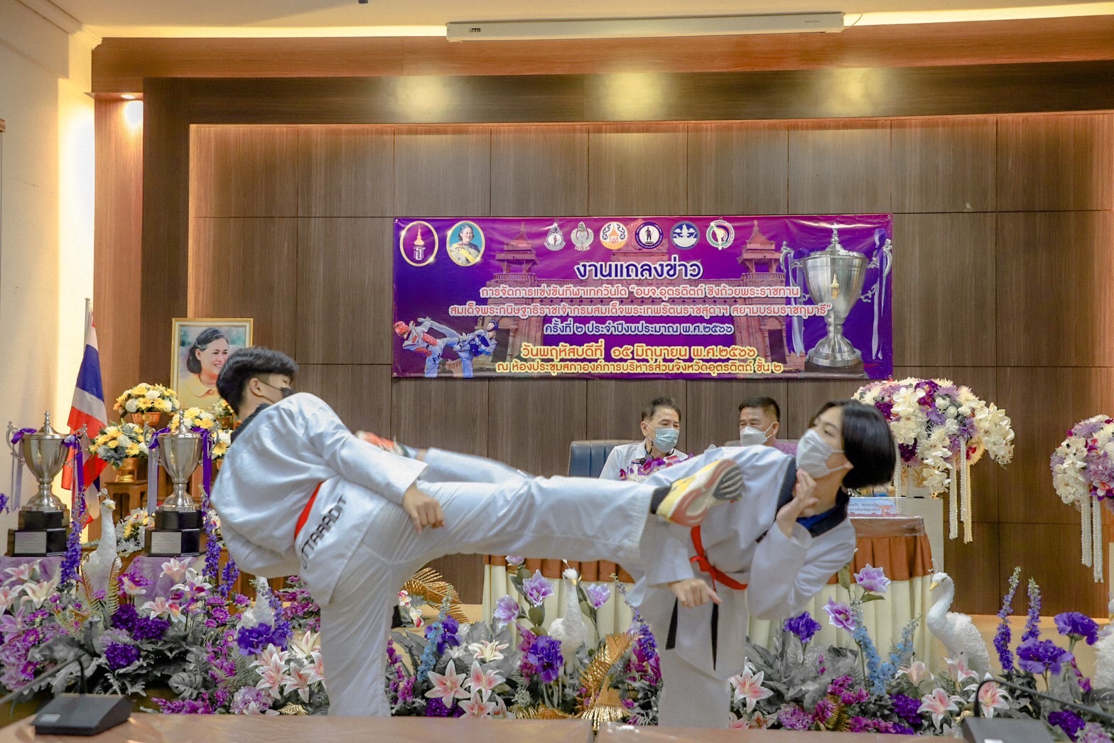 นายสมหวัง พ่วงบางโพ ผู้ว่าราชการจังหวัดอุตรดิตถ์ และ นายชัยศิริ ศุภรักษ์จินดา นายกองค์การบริหารส่วนจังหวัดอุตรดิตถ์ ร่วมเป็นประธานแถลงข่าวการจัดการแข่งขันเทควันโด "อบจ.อุตรดิตถ์" ชิงถ้วยพระราชทานสมเด็จพระกนิษฐาธิราชเจ้ากรม สมเด็จพระเทพรัตนราชสุดาฯ ครั้งที่ 2 ประจำปี 2566 ที่สภาองค์การบริหารส่วนจังหวัดอุตรดิตถ์ เมื่อ 16 มิ.ย. 2566