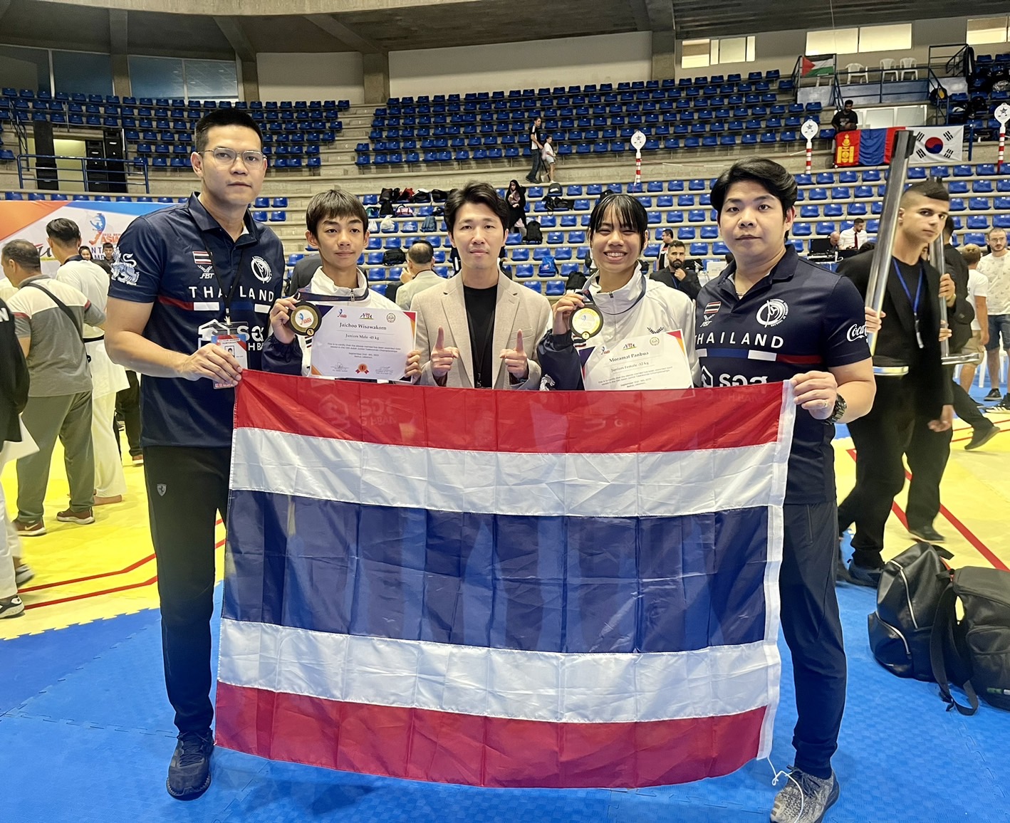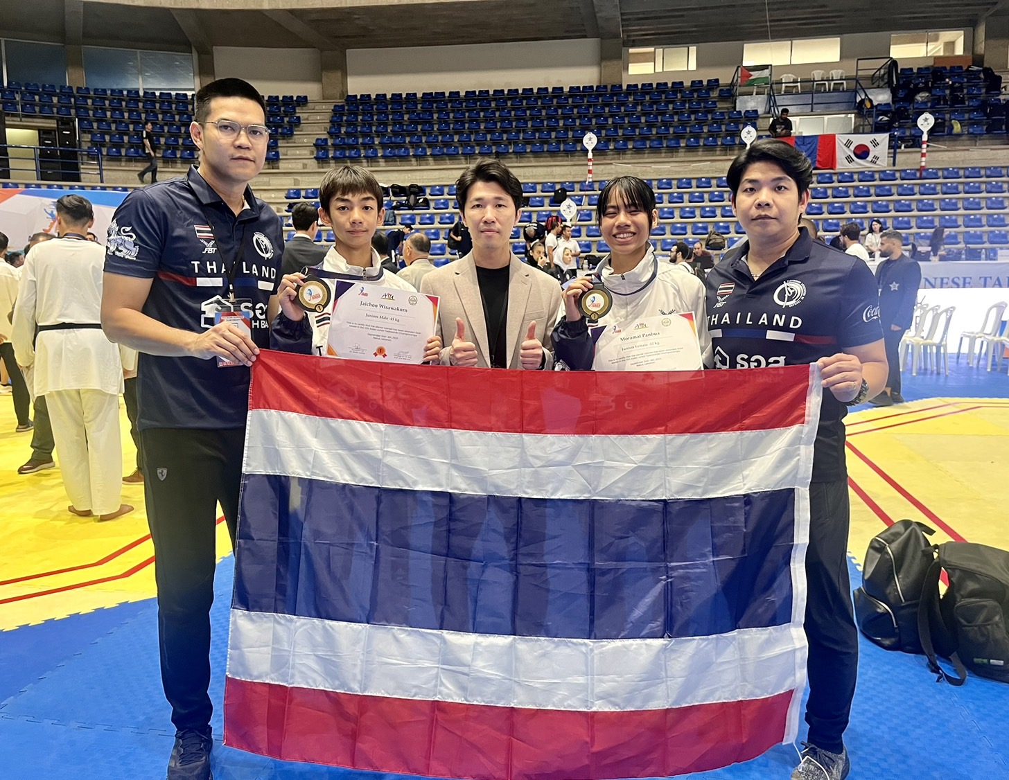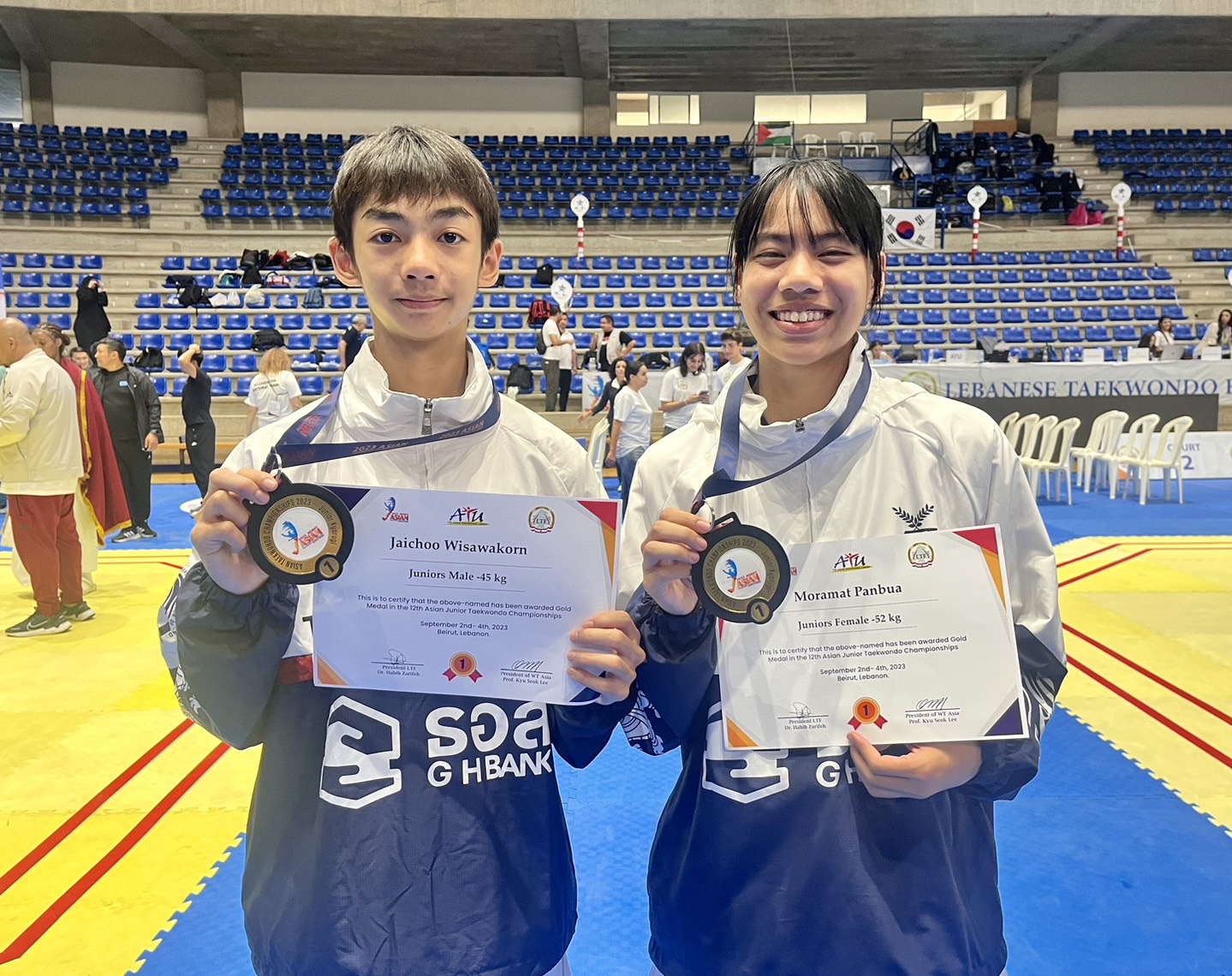 ทีมจอมเตะเยาวชนไทย เปิดหัวได้อย่างสวยงาม ประเดิมเก็บ 2 เหรียญทอง ในการลงชิงชัยวันแรก ศึกเทควันโดชิงแชมป์เอเชีย 2023 ที่เลบานอน โดยได้ 2 ทอง จาก “อาร์มี่" วิศวกร ใจชู ในรุ่นไม่เกิน 45 กก.ชาย กับ บัว" ปานบัว โมรมัต ในรุ่นน้ำหนักไม่เกิน 45 กก.หญิง