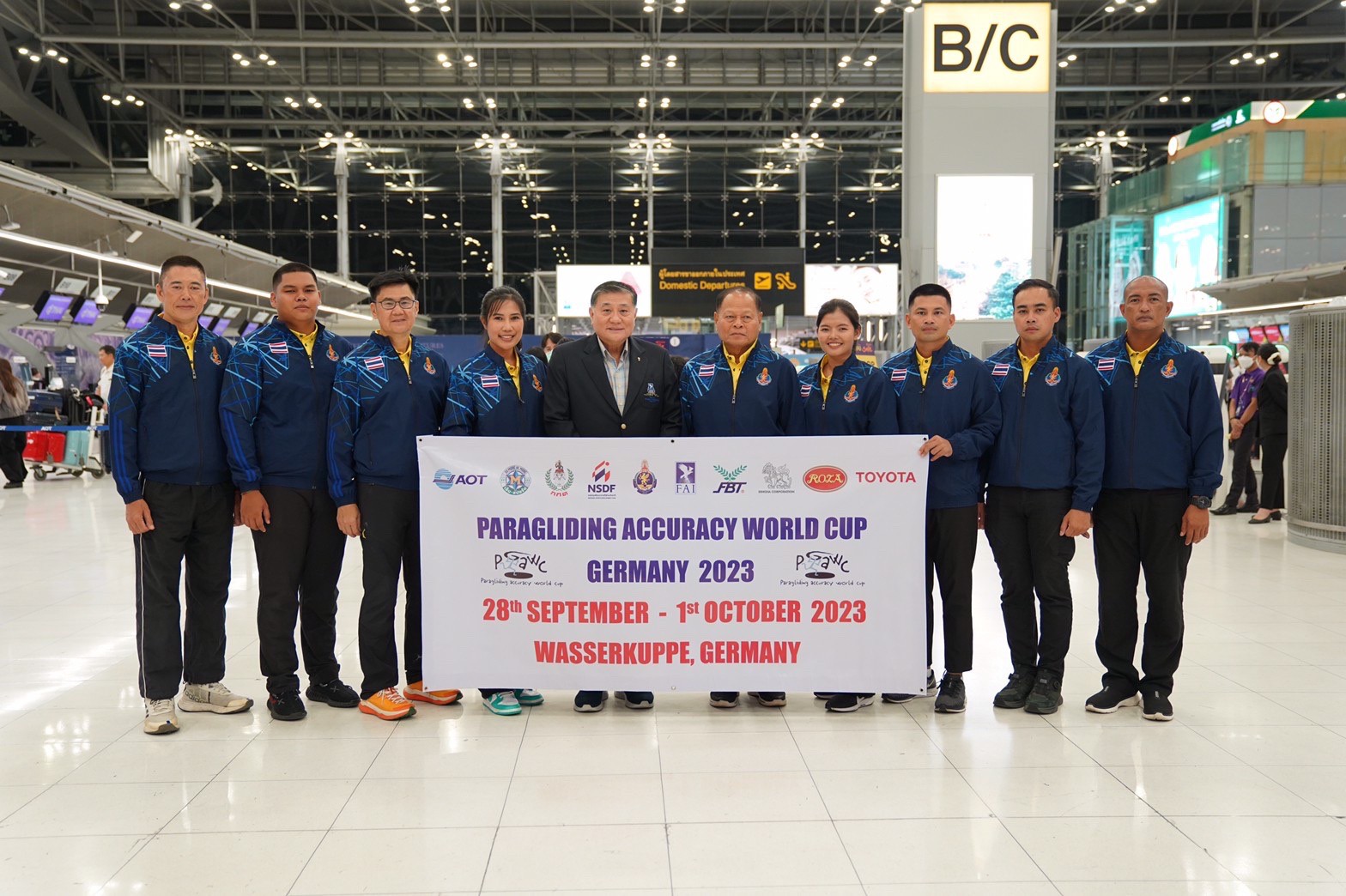 ด้วยสมาคมกีฬาทางอากาศและการบินแห่งประเทศไทย ในพระบรมราชูปถัมภ์ นำโดยนาวาอากาศเอก วีระยุทธ ดิษยะศริน นายกสมาคมกีฬาทางอากาศและการบินแห่งประเทศไทย ในพระบรมราชูปถัมภ์ พร้อมคณะนักกีฬาและเจ้าหน้าที่ จำนวน 12 คน เดินทาง โดยสายการบินไทย วันที่ 25 กันยายน 2566 เที่ยวบินที่ TG920 จากท่าอากาศยานสุวรรณภูมิเวลา 23.45 น. ถึง ท่าอากาศยานนานาชาติแฟรงก์เฟิร์ต สหพันธ์สาธารณรัฐเยอรมนี ในวันที่ 26 กันยายน 2566 เวลา 06.15 น. เพื่อเข้าร่วมการแข่งขันรายการ "พาราไกลดิ้ง แอคคูเรซี่ เวิลด์คัพ สนามที่ 5 ประจำปี 2566" (Paragliding Accuracy World Cup - Germany 2023) ระหว่างวันที่ 28 กันยายน - 1 ตุลาคม 2566 ณ เมืองวาสซะคุ๊บเพอะ สหพันธ์สาธารณรัฐเยอรมนี