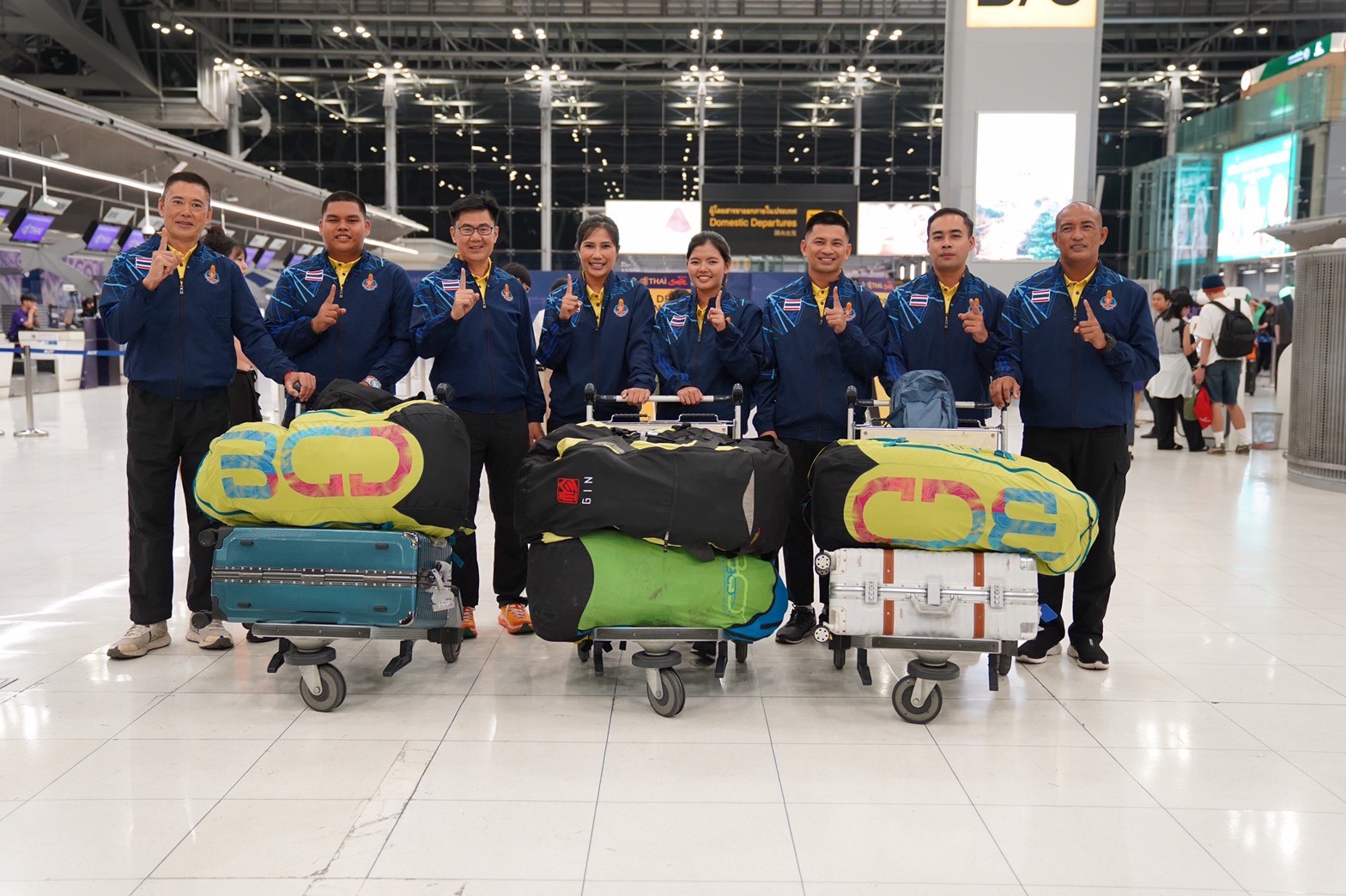 โดยนักกีฬาร่มร่อนบินลงเป้าแม่นยำทั้ง 8 คน ประกอบด้วย ชาย 6 หญิง 2 และ เจ้าหน้าที่ประจำทีม ได้แก่