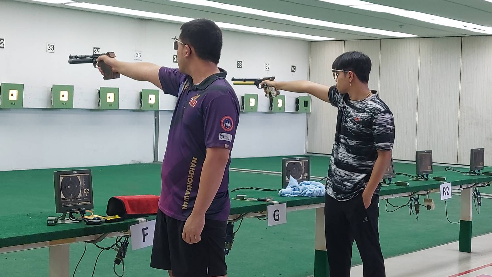 ปืนสั้นสตรี 25 เมตร อันดับ 1 ธันยกร พฤกษากร และ พิมพ์อร คล้ายสุบรรณ มีคะแนนเท่ากัน