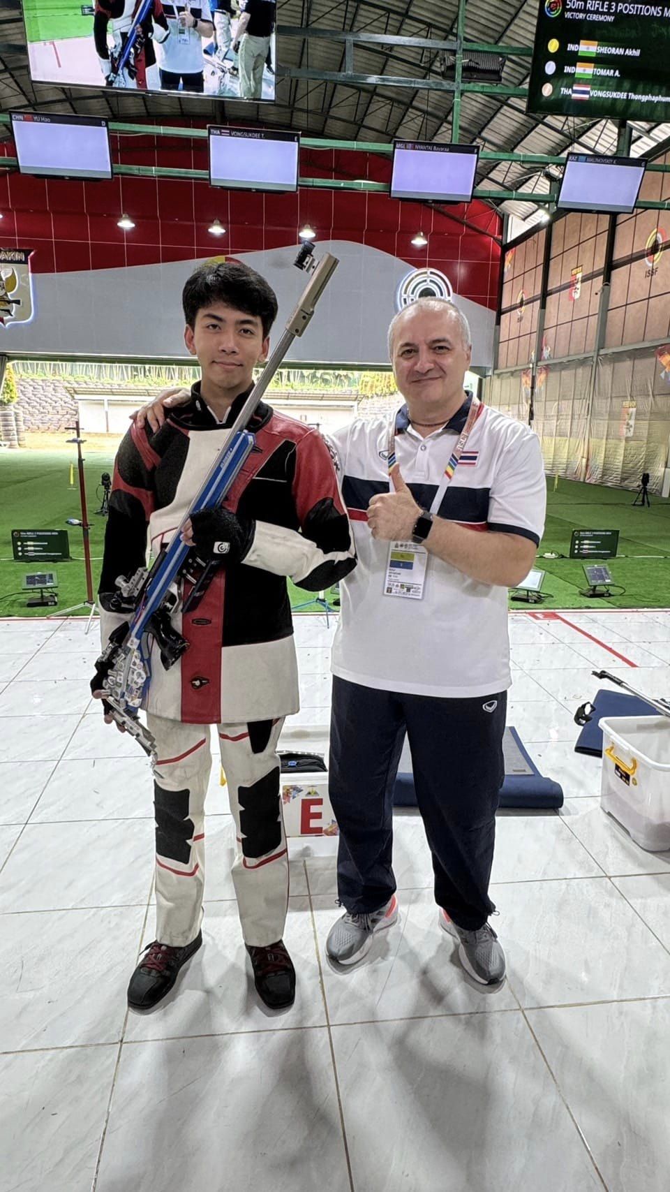ทั้งนี้ การเข้าสู่รอบชิงชนะเลิศของทองผาภูมิ เท่ากับไทยและมาเก๊า ได้คว้าโควต้าโอลิมปิก 2024 แน่นอนแล้ว ส่วนการแข่งขันในรอบชิงชนะเลิศ ทองภูผาภูมิ ยังโชว์ฟอร์มได้อย่างยอดเยี่ยมยิงทำคะแนนได้ 448.8 คะแนน คว้าเหรียญทองแดงมาครอง และเป็นการยิงทำคะแนนได้ดีกว่าตอนคว้าเหรียญทองซีเกมส์ ที่ยิงได้ 445.3 คะแนน