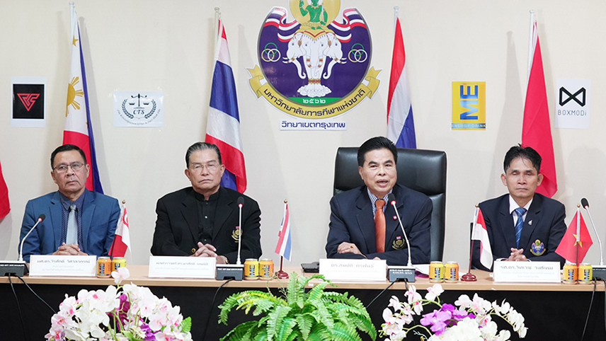 ดร.สมบัติ คุรุพันธ์ นายกสมาคมกีฬาแฮนด์บอลแห่งประเทศไทย พร้อมด้วย พลตำรวจตรี ดร.นรศักดิ์ เหมนิธิ เลขาธิการสมาคมกีฬาแฮนด์บอลแห่งประเทศไทย และ ผู้ช่วยศาสตราจารย์ ดร.วีรศักดิ์ วิศาลาภรณ์ ประธานฝ่ายเทคนิคสมาคมกีฬาแห่งบอลแห่งประเทศไทย ร่วมแถลงข่าวการจัดการแข่งขันกีฬาแฮนด์บอลชายหาดชิงแชมป์ตะวันออกเฉียงใต้ ที่ ห้องประชุมเลขยานนท์ อาคารวิทยบริการ มหาวิทยาลัยการกีฬาแห่งชาติ วิทยาเขตกรุงเทพ อำเภอธัญบุรี จังหวัดปทุมธานี เมื่อวันที่ 10 พ.ย.ที่ผ่านมา