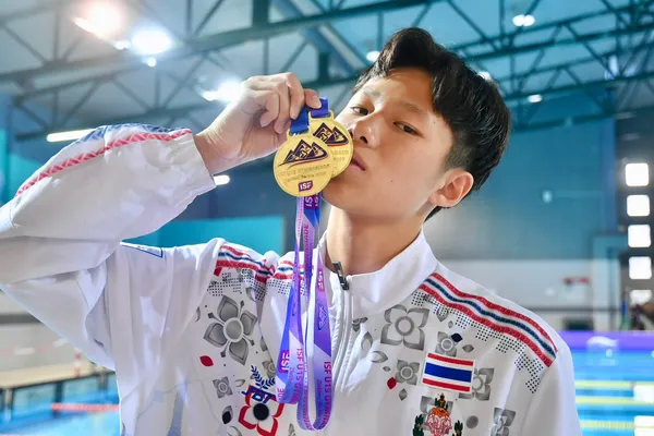 หลังจากนั้น “ฉลามออม” อาชวินทร์ สุทธิวรชัย ยังพาทีมทีมฉลามหนุ่มนักเรียนไทย ที่ประกอบด้วย ธนภัทร พิณเสนาะ, ศุภัคพงษ์ นันทปิยะวรรณ และพสิษฐ์ บุญมี คว้าอีก 1 เหรียญทอง ในประเภทว่ายผลัดฟรีสไตล์ 4x50 ม. หลังทำเวลาดีสุด 1.35.79 น. ส่วนเหรียญเงิน ไต้หวัน เวลา 1.35.90 น. เหรียญทองแดง บราซิล 1 เวลา 1.36.22 น.