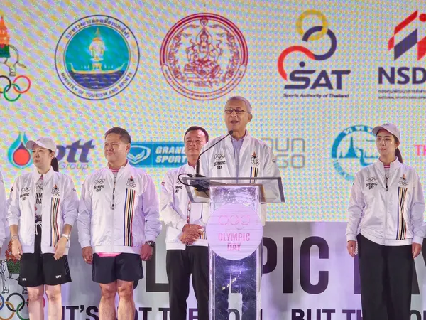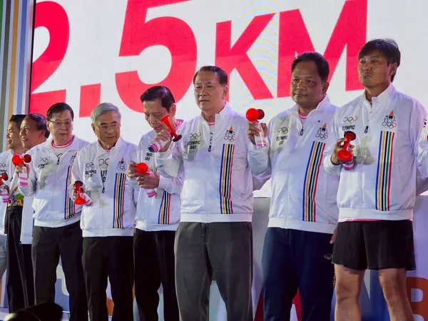 โดยมี ผศ. พิมล ศรีวิกรม์ ประธานคณะกรรมการโอลิมปิคแห่งประเทศไทย ในพระบรมราชูปถัมภ์, นางฐาปณีย์ เกียรติไพบูลย์ ผู้ว่าการการท่องเที่ยวแห่งประเทศไทย, นายพิริยะ ฉันทดิลก ผู้ว่าราชการจังหวัดสุพรรณบุรี, นายปรีชา ลาลุน รองผู้ว่าการการกีฬาแห่งประเทศไทย ฝ่ายกีฬาเป็นเลิศและวิทยาศาสตร์การกีฬา และคณะกรรมการโอลิมปิคแห่งประเทศไทยฯ ร่วมงาน ณ สนามกีฬากลางจังหวัดสุพรรณบุรี