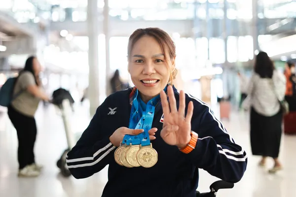 ทัพนักกีฬาวีลแชร์ฟันดาบทีมชาติไทยเดินทางกลับถึงประเทศไทย หลังจบภารกิจใน The Solo 2025 Para Fencing World Cup ณ เมืองโซโล ประเทศอินโดนีเซีย โดยสร้างผลงานอย่างยอดเยี่ยม คว้าไปทั้งหมด 11 เหรียญ ได้แก่ 4 เหรียญทอง, 3 เหรียญเงิน และ 4 เหรียญทองแดง