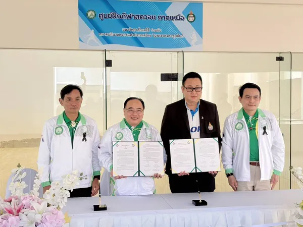รองศาสตราจารย์ ดร.วีระพล ทองมา อธิการบดีมหาวิทยาลัยแม่โจ้ และ นายอัครินทร์ หิรัญพฤกษ์ เลขาธิการสมาคมกีฬาสควอชแห่งประเทศไทยฯ และรองประธานสหพันธ์กีฬาสควอชแห่งเอเชียตะวันออกเฉียงใต้ร่วมลงนามบันทึกความร่วมมือ (MOU) กับสมาคมกีฬาสควอชแห่งประเทศไทยในพระบรมราชูปถัมภ์ เพื่อพัฒนากีฬาสควอชในระดับภูมิภาคและระดับชาติ ที่คอร์ทสควอช ศูนย์กีฬาเฉลิมพระเกียรติ มหาวิทยาลัยแม่โจ้ เมื่อวันที่ 2 ธ.ค. 2568