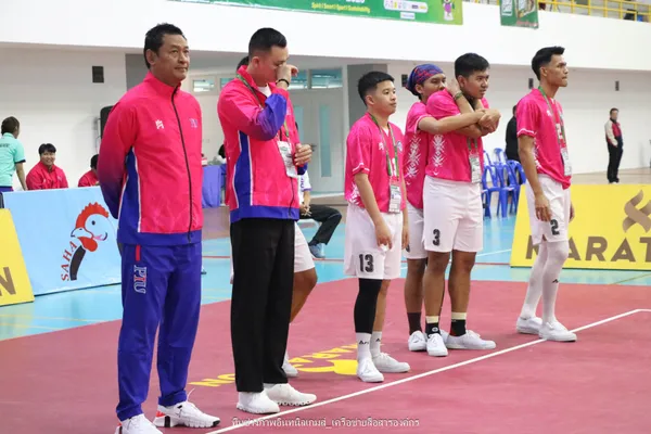 ด้าน มหาวิทยาลัยการกีฬาแห่งชาติ ประกอบด้วย สุกฤต วัชรบูรณพงษ์ (เสิร์ฟ), เจตนิพัทธ์ ผ่องสันเทียะ (ชง) และ อภิสิทธิ์ พันแสนแก้ว (ฟาด) สู้เต็มที่ ก่อนจะคว้าเหรียญเงินจากรายการนี้