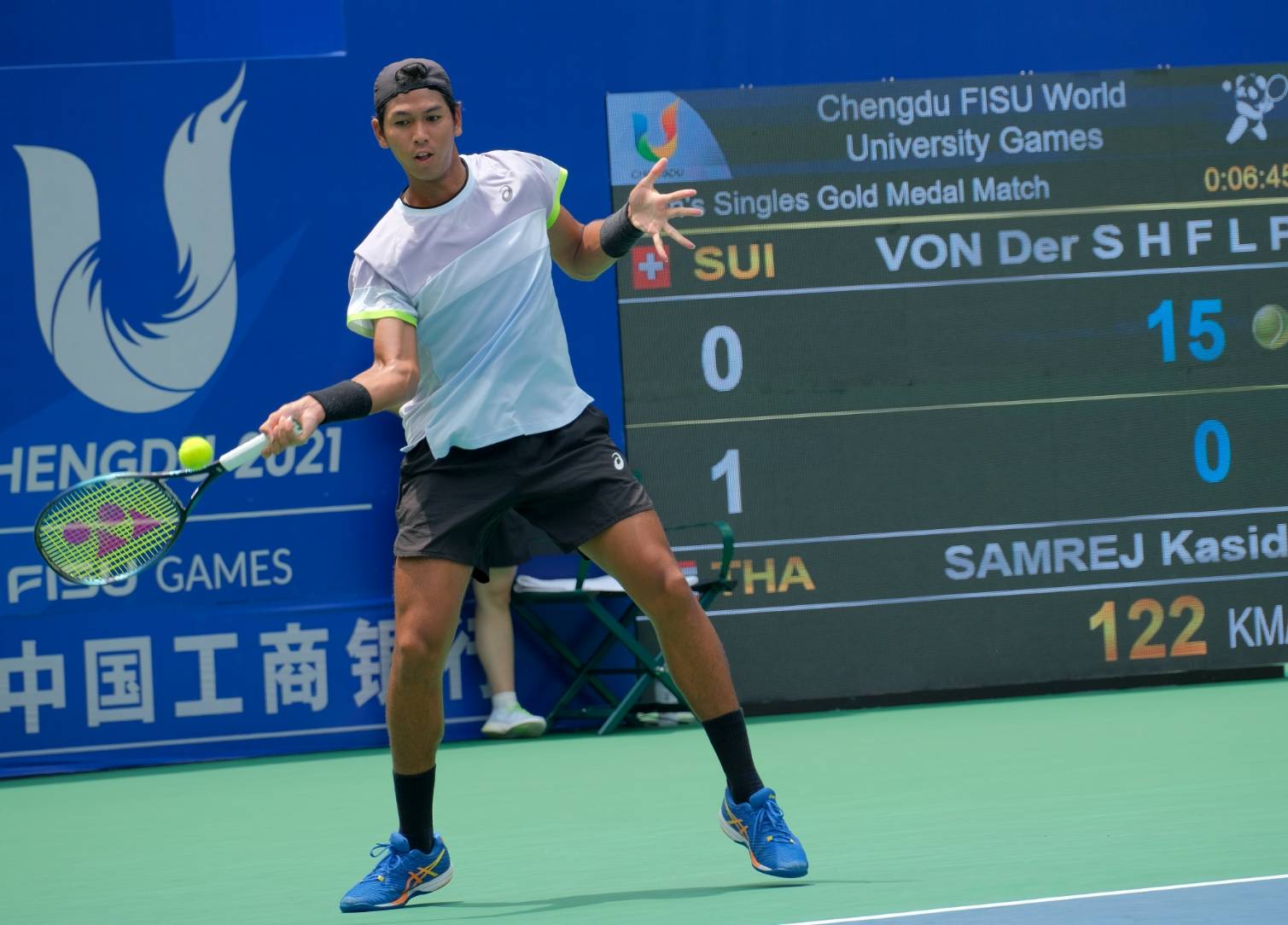 การแข่งขันเทนนิส กีฬามหาวิทยาลัยโลก ฤดูร้อน ครั้งที่ 31 "เฉิงตู2021" ที่เมืองเฉิงตู ประเทศจีน เมื่อช่วงค่ำวันที่ 6 ส.ค.66 เป็นการแข่งขัน รอบชิงชนะเลิศ โดยชายเดี่ยว "บูม" กษิดิศ สำเร็จ นักหวดไทยวัย 22 ปี จากมหาวิทยาลัยกีฬาแห่งชาติ วิทยาเขตสมุทรสาคร มืออันดับ 655 ของโลก มือวาง 4 ของรายการ ผ่านเข้าชิงฯมาพบกับ เฮนรี่ บอน เดอ ชูเลนเบิร์ก นักศึกษามหาวิทยาลัยอาเวิร์ด สาขาวิชาคณิตศาสตร์ ชาวสวิสเซอร์แลนด์ มืออันดับ 950 ของโลก มือวาง 10 ของรายการ