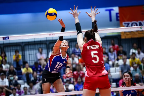 เซต 2 ทีมวอลเลย์บอลสาวไทยเริ่มต้นได้ดีโดย วริศรา สีทาเลิศ ตบเต็มมือลงไปอย่างเด็ดขาด ขึ้นนำ 1-0 ก่อนที่เกมจะไหลลื่นขึ้น ทีมไทยเริ่มแก้เกมได้ดีจากการตั้งรับและบล็อก จนทำแต้มหนีห่างเป็น 14-10 อย่างไรก็ตาม ทีมชาติฟิลิปปินส์ไม่ยอมแพ้ง่าย ๆ แก้เกมกลับมาได้ ไล่จี้ขึ้นมาเป็น 16-17 และตีเสมอสำเร็จที่ 18-18 ก่อนจะแซงนำครั้งแรกในเซตนี้ที่ 20-19 จากลูกตบของ โซโลม่อน ที่ตีฝ่าบล็อกสาวไทยเข้าไป เกมช่วงท้ายเซตดุเดือด ผลัดกันทำแต้มอย่างสูสี จนแต้มมาเสมอกันที่ 24-24 แต่สุดท้ายเป็นทีมสาวไทยที่รวมพลังบีบเกมกลับมาได้อย่างยอดเยี่ยม พลิกเอาชนะไป 26-24 ตีเสมอเป็น 1-1 เซต ทำให้เกมกลับมาสูสีอีกครั้ง