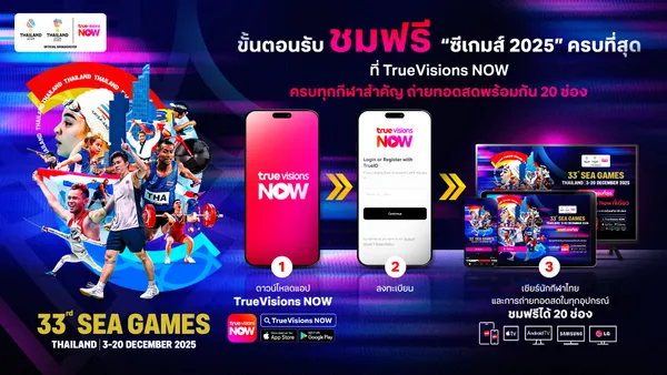 ทรูวิชั่นส์ นาว OTT รายเดียวในไทย ถ่ายสดซีเกมส์ 2025 ครบทุกกีฬา ตั้งแต่ 3-20 ธ.ค. 2568 พร้อม 20 ช่องสัญญาณ ให้คนไทยชมฟรีทุกอุปกรณ์และเชียร์ทัพนักกีฬาไทยเต็มที่