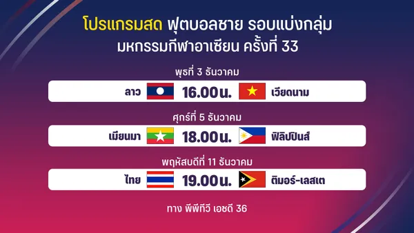 เวลา 19.00 น. : ฟุตบอลชาย (รอบแบ่งกลุ่ม) ไทย พบ ติมอร์-เลสเต
