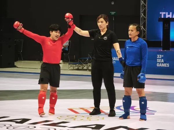 รุ่น 54 กก. หญิง “น้องแอม กัญจุฑา ภัทรบุญซ่อน” เปิดฉากยอดเยี่ยมด้วยการเอาชนะน็อก จีน่า อาร์ออส จากฟิลิปปินส์ในยกแรกอย่างเด็ดขาด ก่อนลงสนามนัดที่ 2 พบ เบอร์เนดิท ปวยลิน จากสิงคโปร์ ซึ่งนักสู้ไทยออกอาวุธจะแจ้งกว่าและทำเกมได้เหนือกว่า ก่อนจะชนะคะแนนครบยก ผ่านเข้าสู่รอบชิงชนะเลิศได้ตามเป้าหมาย