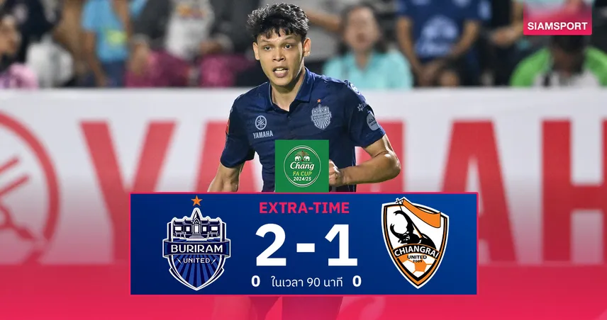 ผลบอล เมืองทอง 2-3 บุรีรัมย์ (ช้าง เอฟเอ คัพ) : ปราสาทสายฟ้าซิวแชมป์สมัย 7 ลุ้น 4 แชมป์