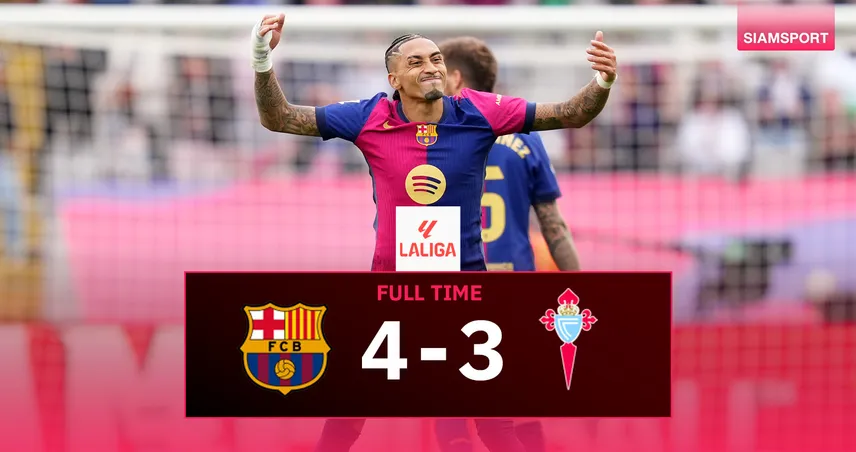ผลบอลลาลีกา: บาร์ซ่าโกงตาย! ราฟินญ่าเบิ้ลแซงเซลต้า 4-3 นำฝูง 7 แต้ม