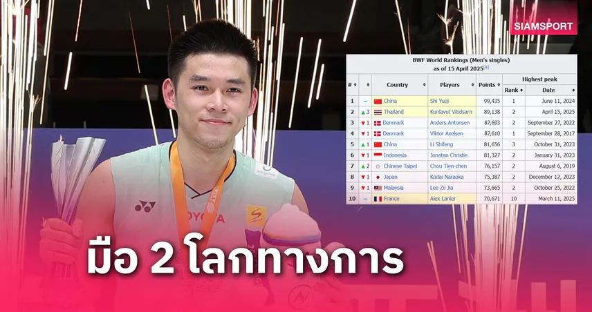"วิว กุลวุฒิ" ขยับขึ้นมือ 4 โลกหลังคว้าเงินแบดมินตันโอลิมปิก